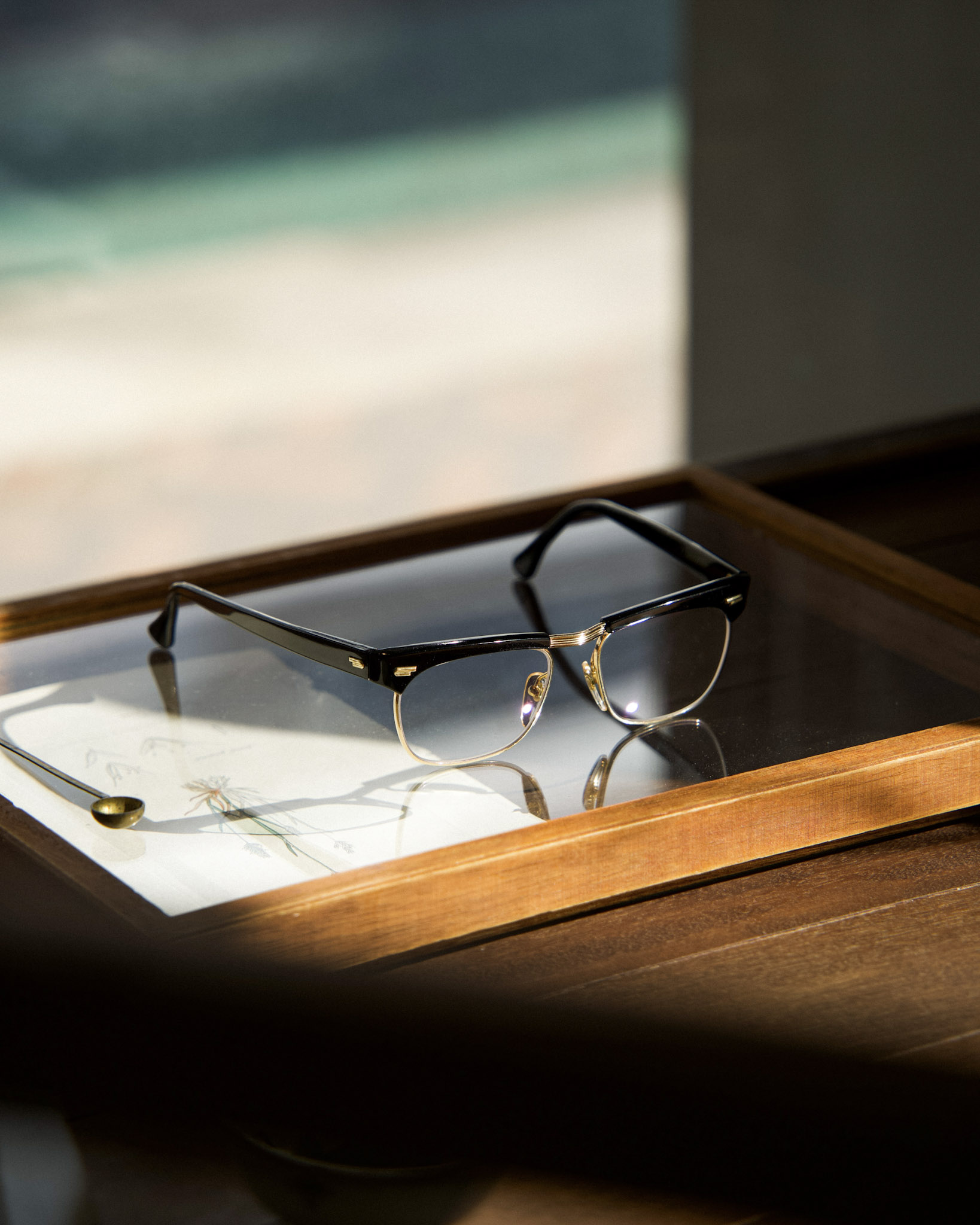 独自開発のワッシャーによるスムーズな開閉や、大胆にカットされたテンプルエンドが特徴で、クラシックとモダンを融合させたタイムレスな仕上がりです。